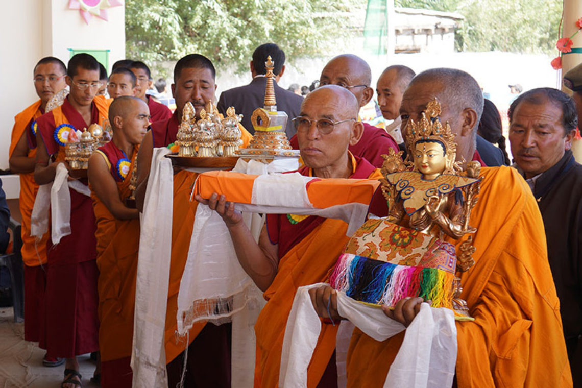 Chư Tăng dâng những phẩm vật cúng dường lên Thánh Đức Đạt Lai Lạt Ma trong Lễ cầu nguyện cúng dường Trường thọ ở Leh, Ladakh, J & K, Ấn Độ, vào 7 tháng 8, 2012. Ảnh / Jeremy Russell / VPDLLM