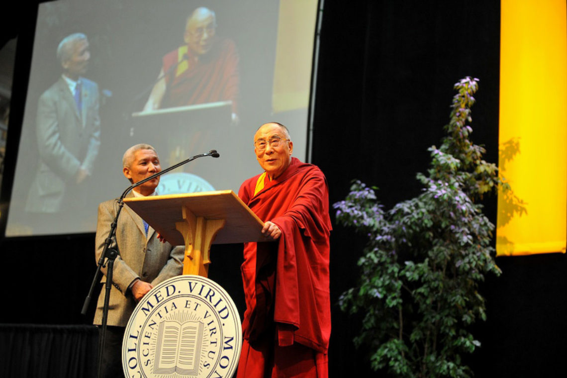 Thánh Đức Đạt Lai Lạt Ma phát biểu tại sân vận động Nelson của Đại Học Middlebury ở Middlebury, VT, vào 13 tháng 10, 2012. Ảnh / Sonam Zoksang